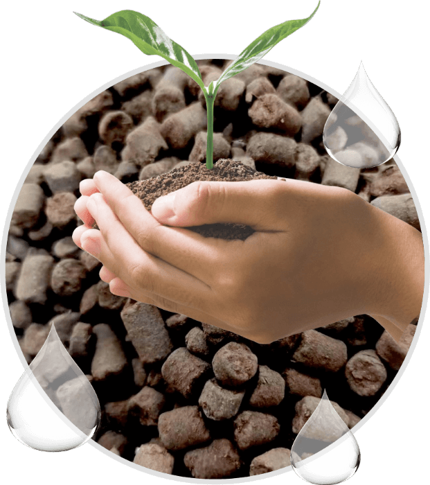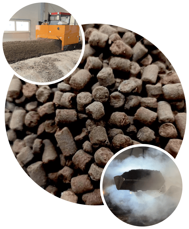 Mėšlui gaminti naudojame pažangią perdirbimo liniją. Joje mėšlas kompostuojamas aukštesnėje nei 70 °C temperatūroje, po to džiovinamas kelių šimtų laipsnių temperatūroje, todėl jame nelieka ligų sukėlėjų ir piktžolių sėklų, o visi vertingi organiniai komponentai išlieka.